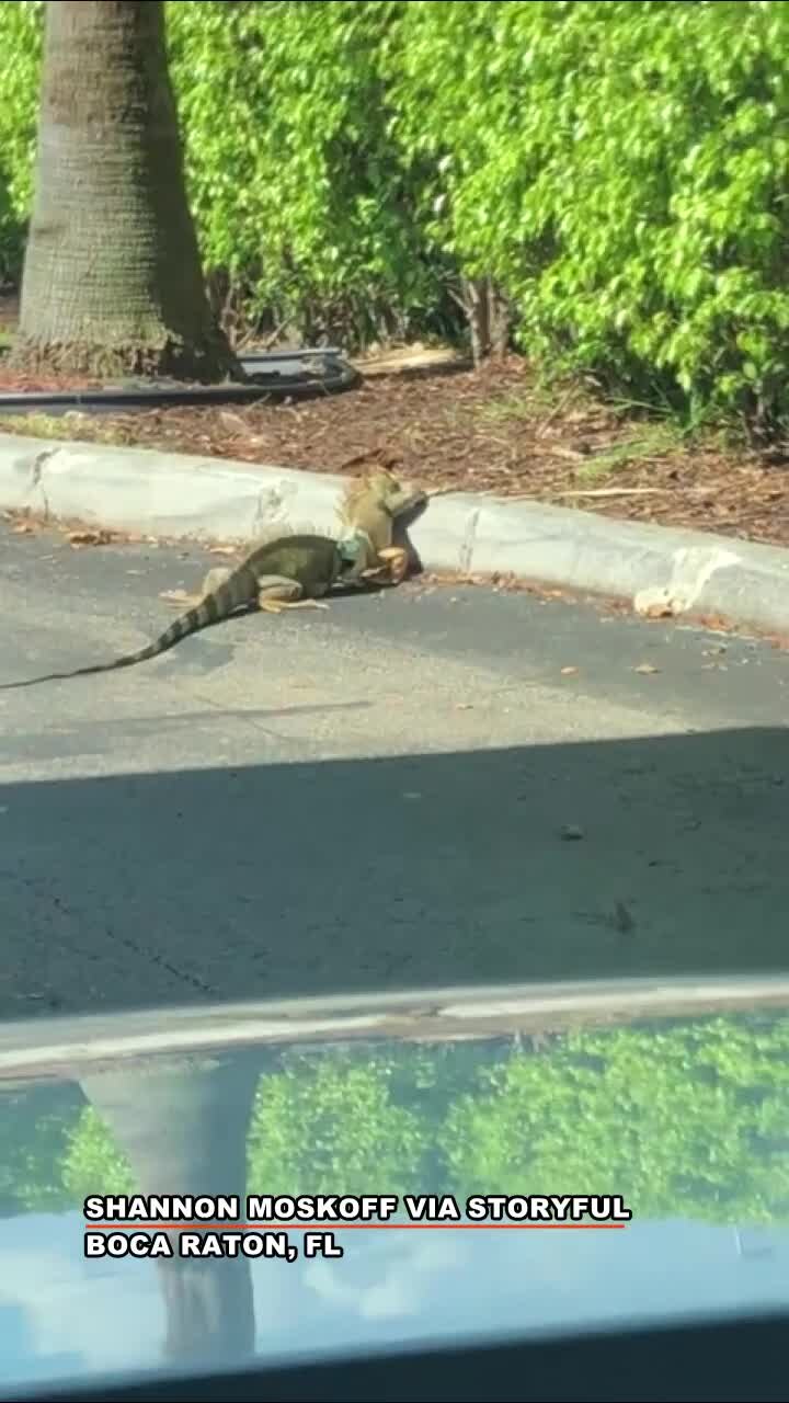 Iguanas tangle in Florida Starbucks parking lot