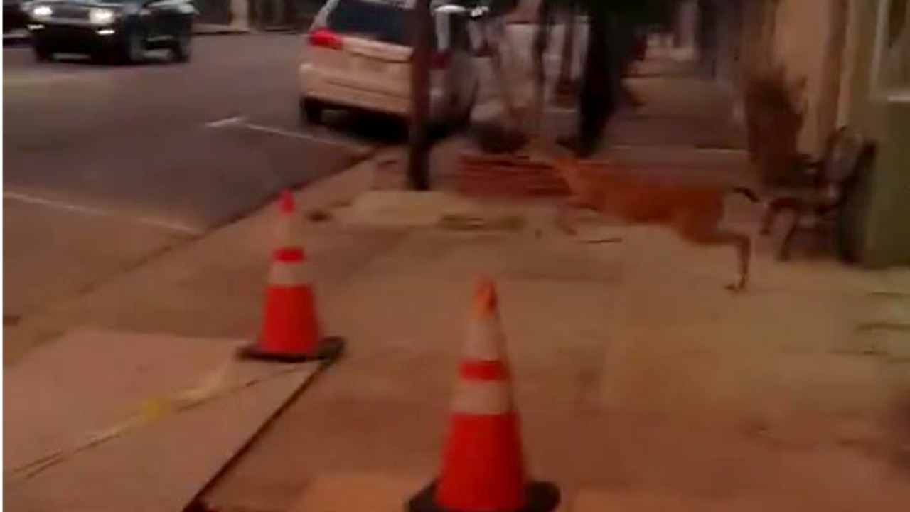 A group of rogue deer were caught on camera running from a barber shop in Brookhaven, Mississippi, after smashing its front window to smithereens on June 30.