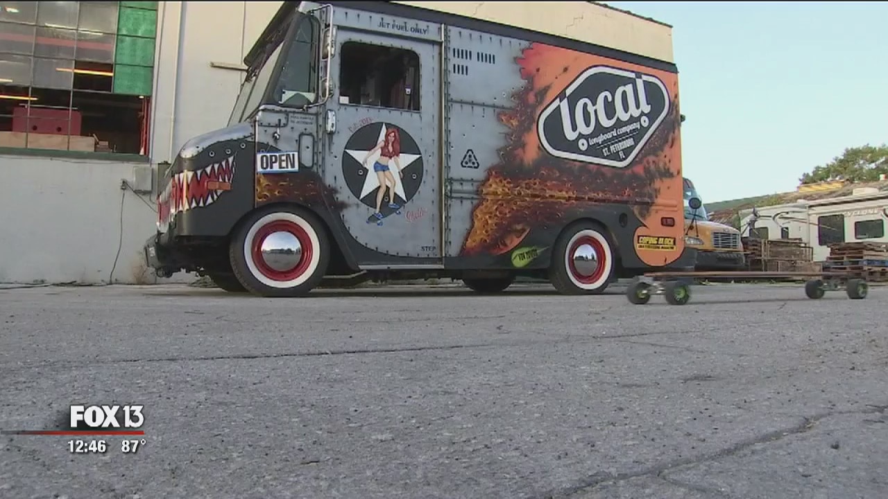 A skateboard business out of St. Petersburg it literally a business on wheels. The Local Longboard Company makes its products in the city, then loaded onto what looks like a food truck, and taken out into the community where skaters skate throughout Tampa Bay.