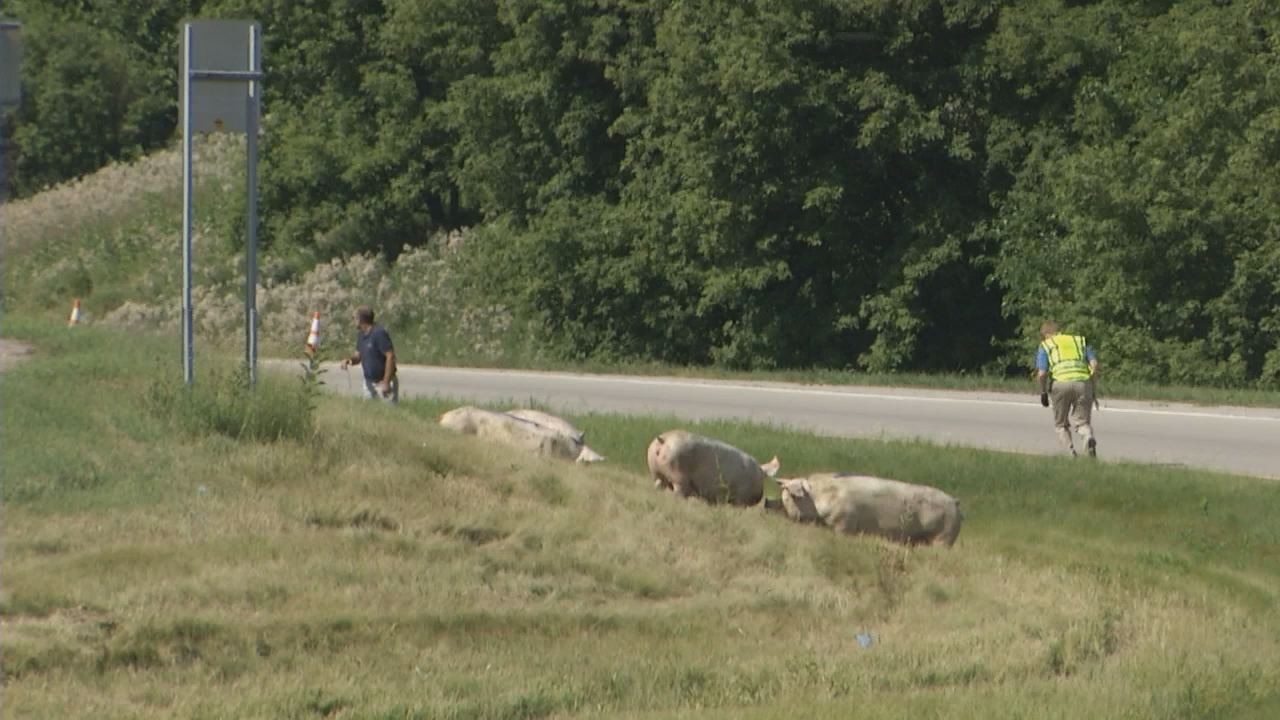 Pigs jailbreak from truck on highway