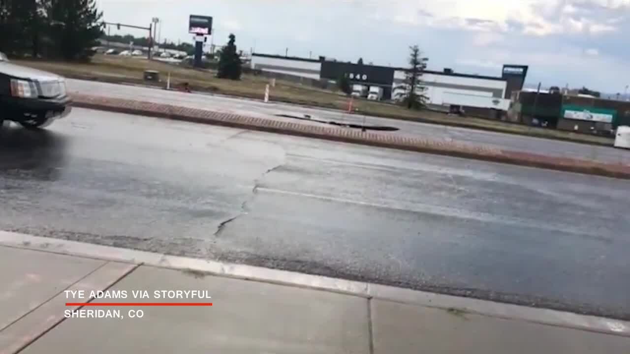 A sinkhole swallowed a car in Sheridan, Colorado. Video: Tye Adams via Storyful