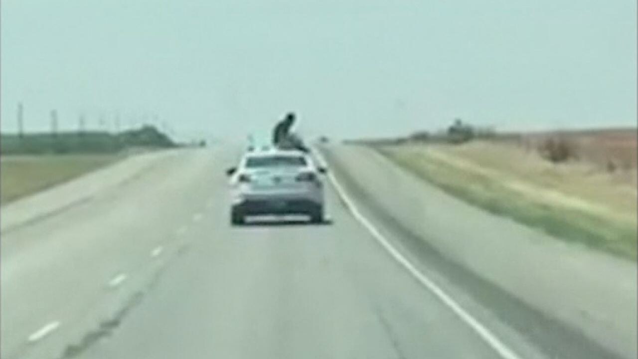 A Texas inmate took a wild ride after breaking the window of a patrol car and climbing onto its roof as it sped down a highway.