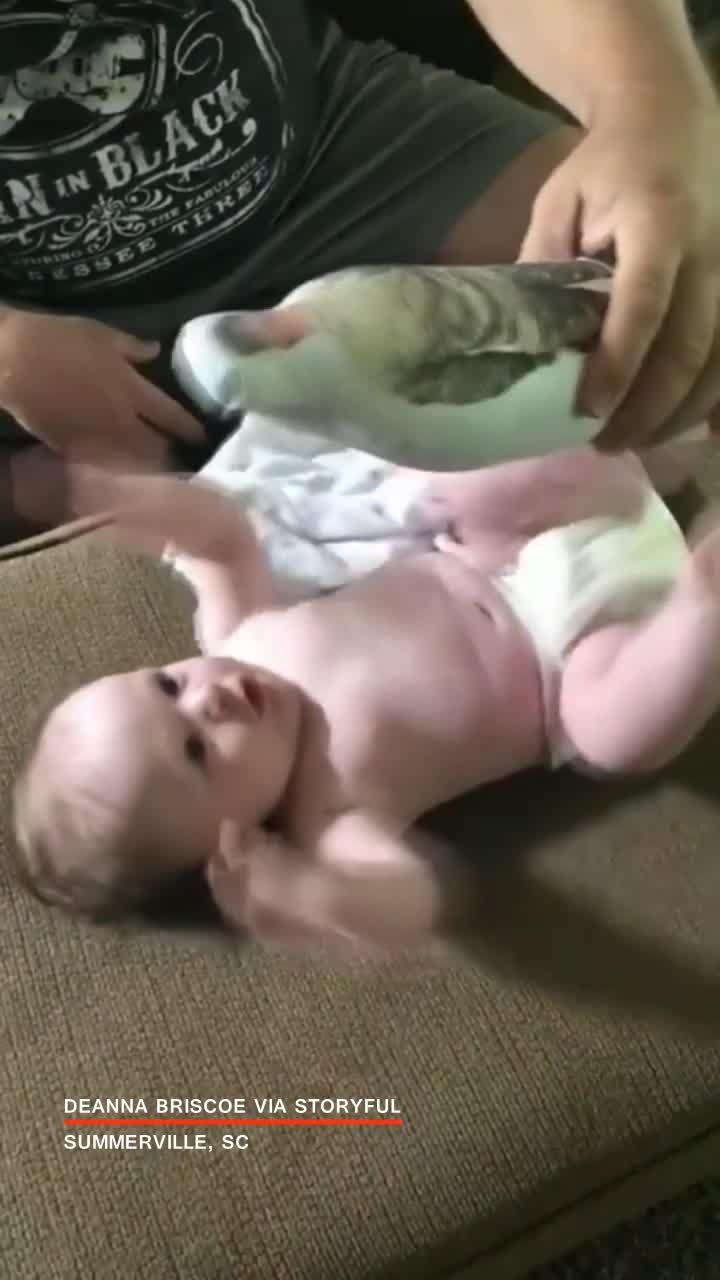 A baby boy who was missing his deployed daddy had an adorable reaction to a doll with his father's likeness on it. COURTESY: Deanna Briscoe via Storyful