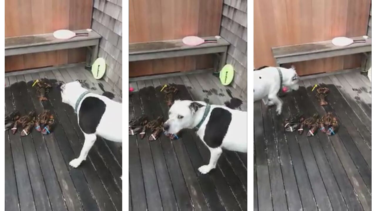 Living in Massachusetts, it was only a matter of time before Miss Moo the bull terrier came face-to-face with some lobsters. The dog's owner, Gabrielle Gould, captured video of her pet's reaction, which included some growling and barking as it was seen circling the captured lobsters.