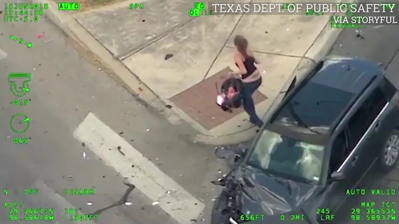A woman driving an SUV with a baby on board led police on a high-speed chase through San Antonio on June 15, before crashing into another vehicle, running away from the scene with a baby, and attempting to hijack another car.