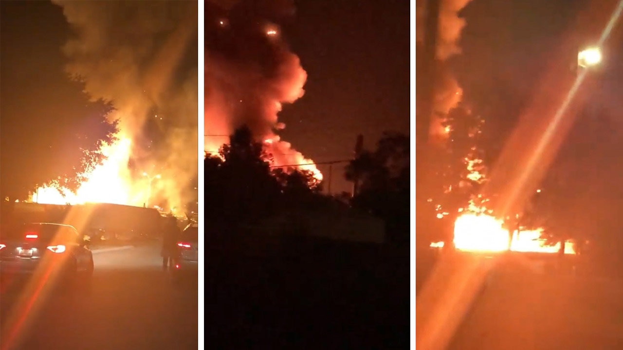 Canisters of Axe body spray exploded on a Texas highway Friday night when a semi-truck carrying the deodorant caught fire. Credit: Becca Paige via Storyful