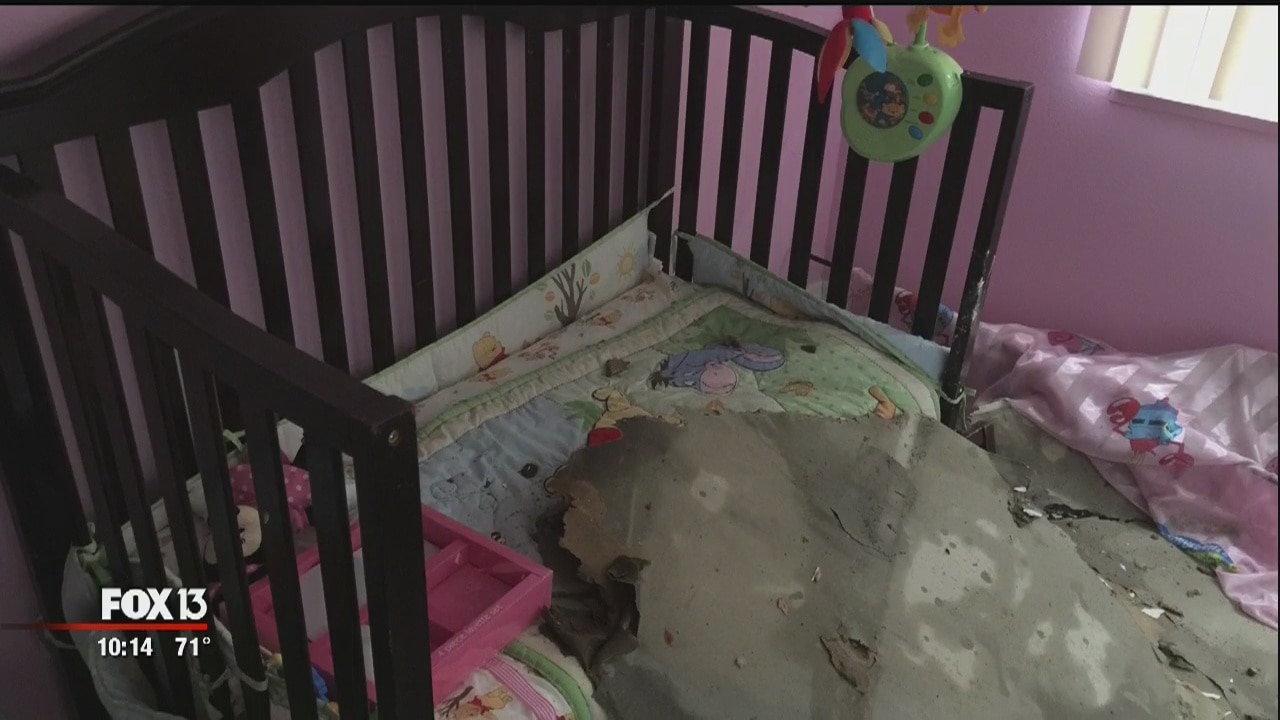 A Pasco County family is thankful Friday after a tree toppled onto their home and through the roof, into their baby?s bedroom.
