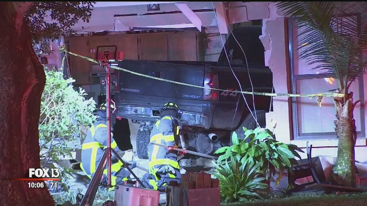 An elderly woman was taken to the hospital after a truck crashed into her Tampa home.