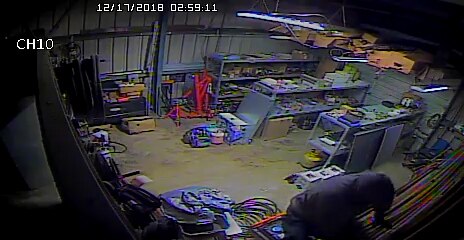 A suspected burglar in Lakeland, Florida appears to have cut his way through a fence, and then through a business' wall, before climbing to the ceiling to cut the cord on a surveillance camera.?