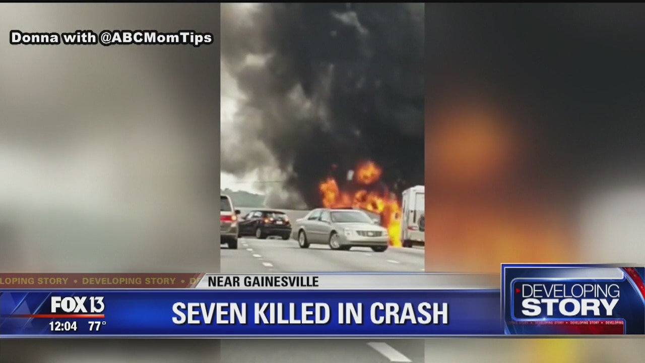 Authorities say five children headed to Disney World are among the seven people killed in Thursday's highway crash on Interstate 75. Two truck drivers were also killed.