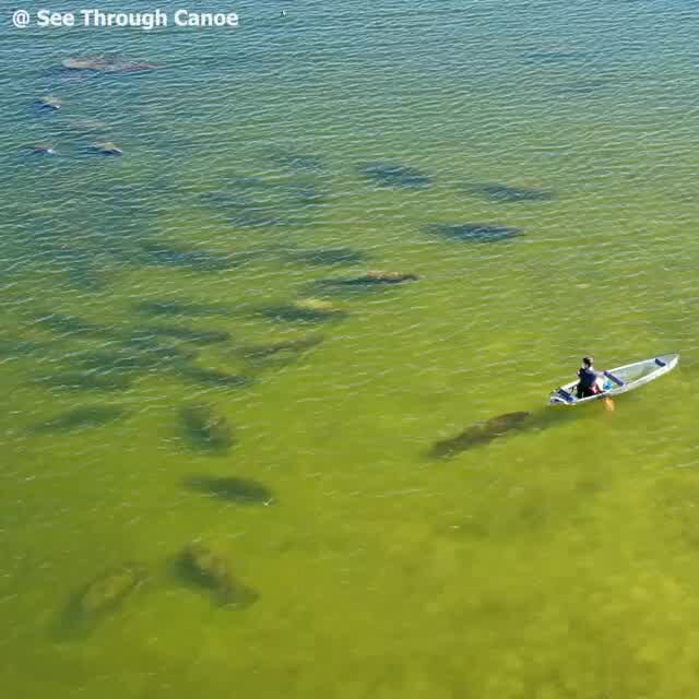 A man on a clear canoe had an incredible encounter with manatees off the coast of St. Petersburg.?