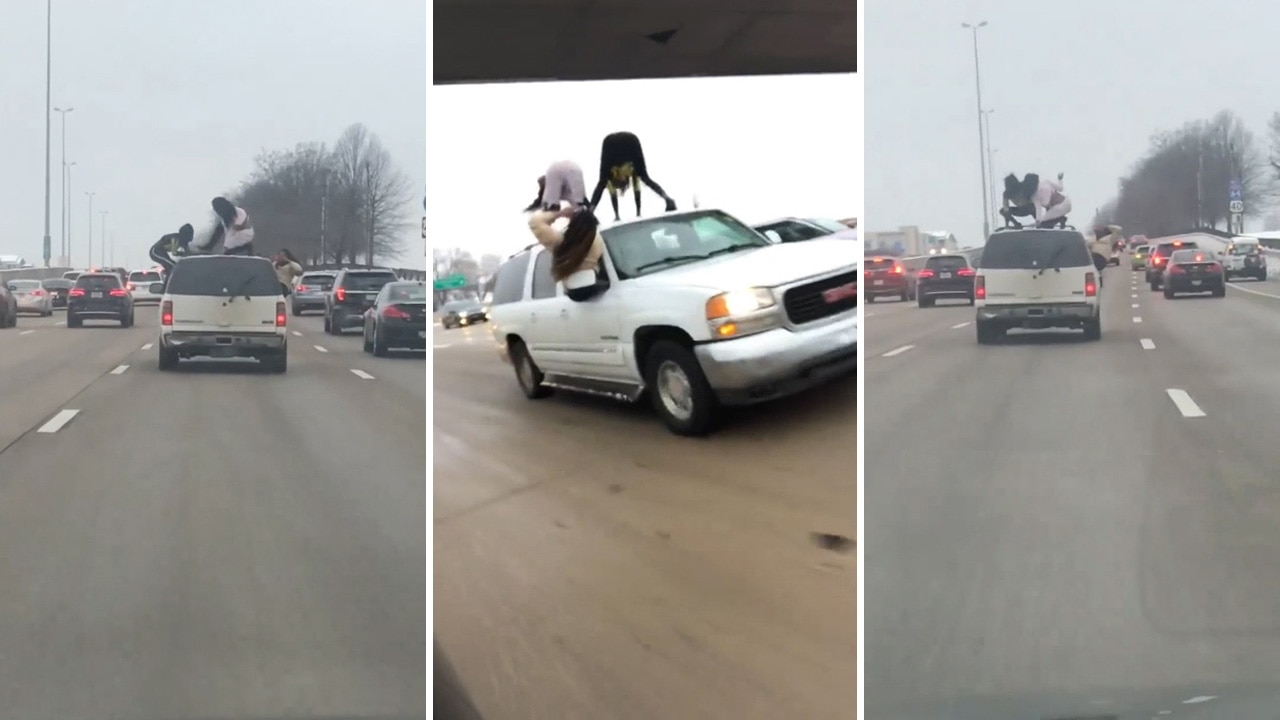 Along a Missouri highway, two women were seen dancing on top of a moving SUV, and it was all captured on video. Video credit: Jackie Friedhoff