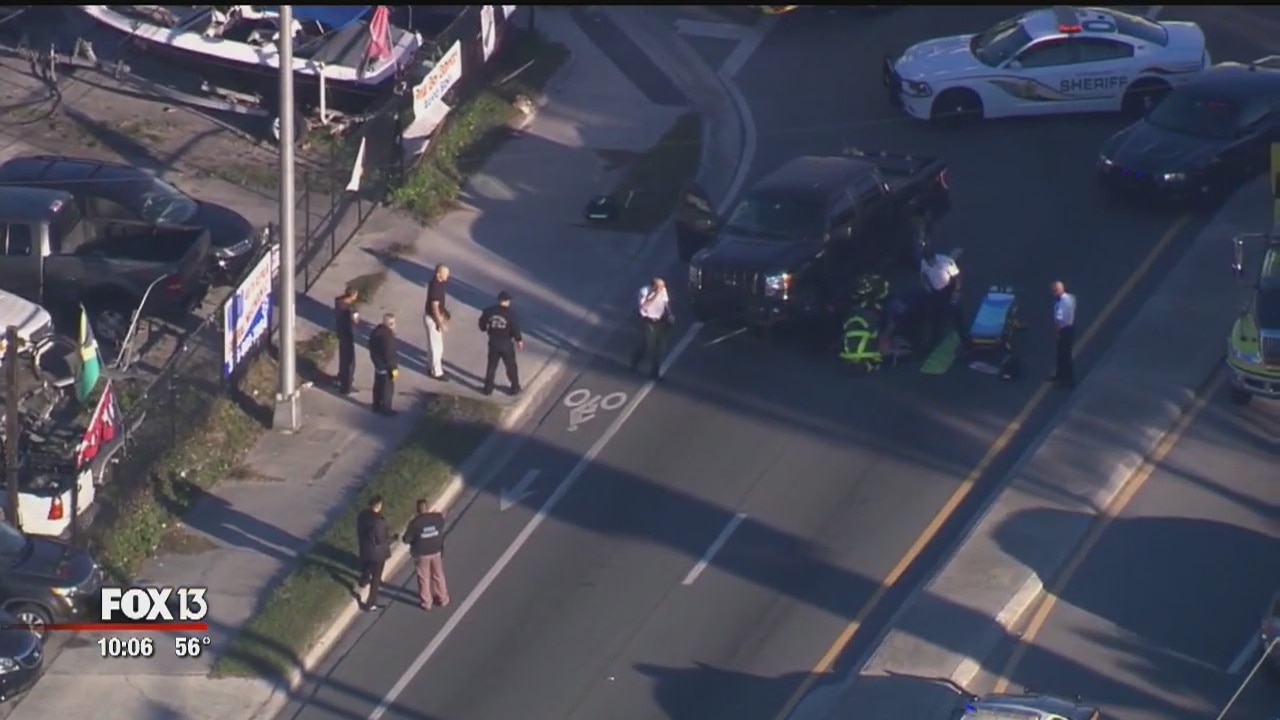 A man is recovering after he was run over by a pick-up truck while riding his bike Thursday.