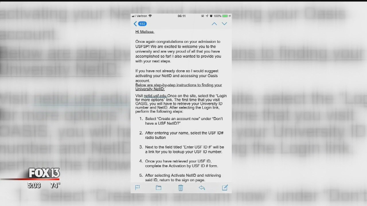 At first, there was excitement, and then, disappointment. Senior Mel Garcia was one of 430 applicants who received acceptance letters via email from USF St. Pete on Saturday, only to be told an hour later, it was a mistake.