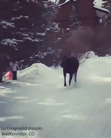 A moose on the loose chased skiers at a resort in Breckenridge, Colorado.