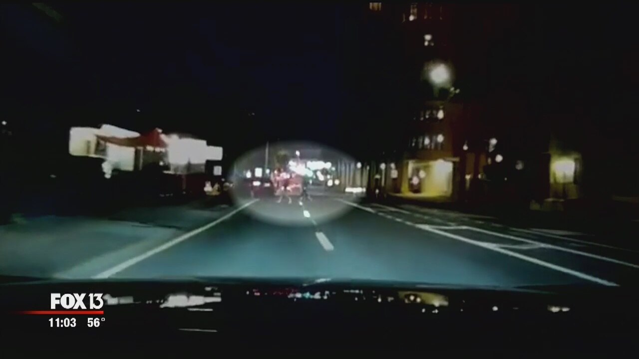 Driver swerves to miss Tampa pedestrian