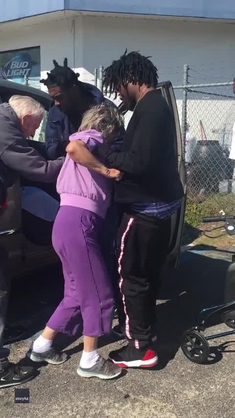 Good Samaritans help woman into car
