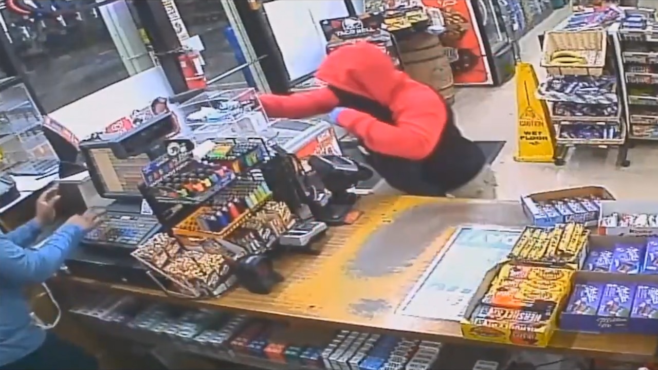 Robber waves gun in store clerk's face