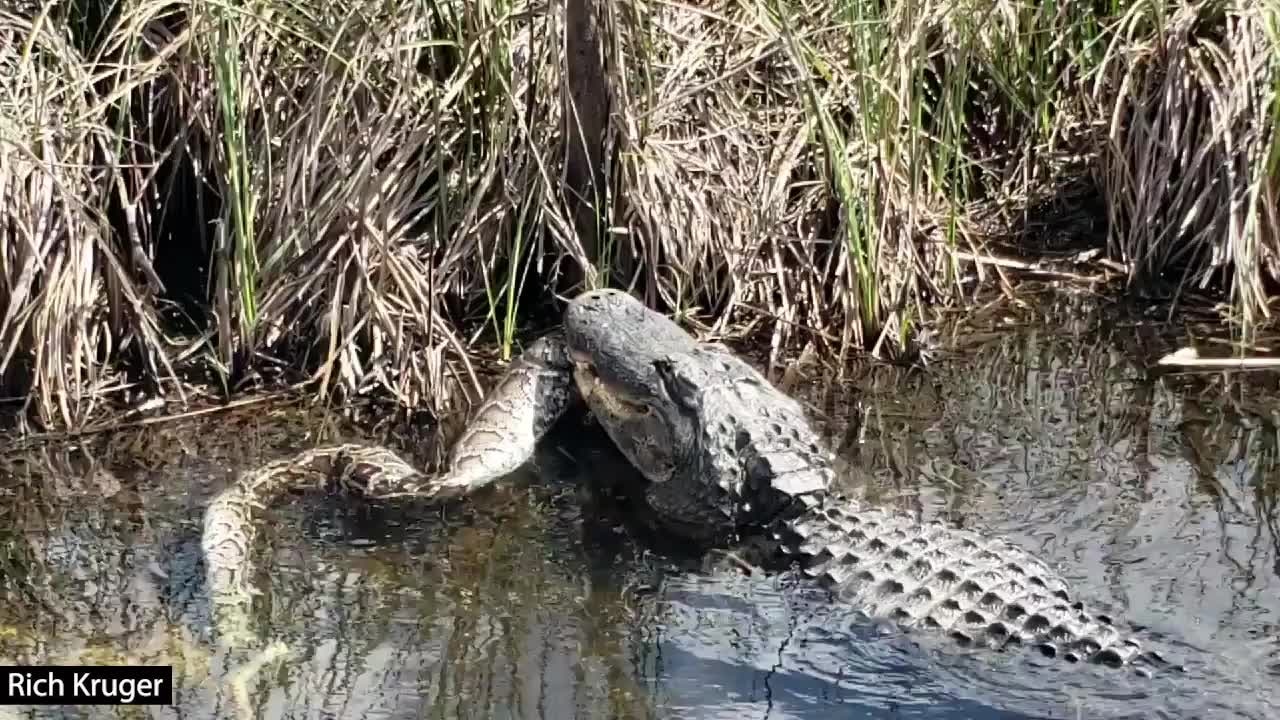 Alligator eats python in the Everglades