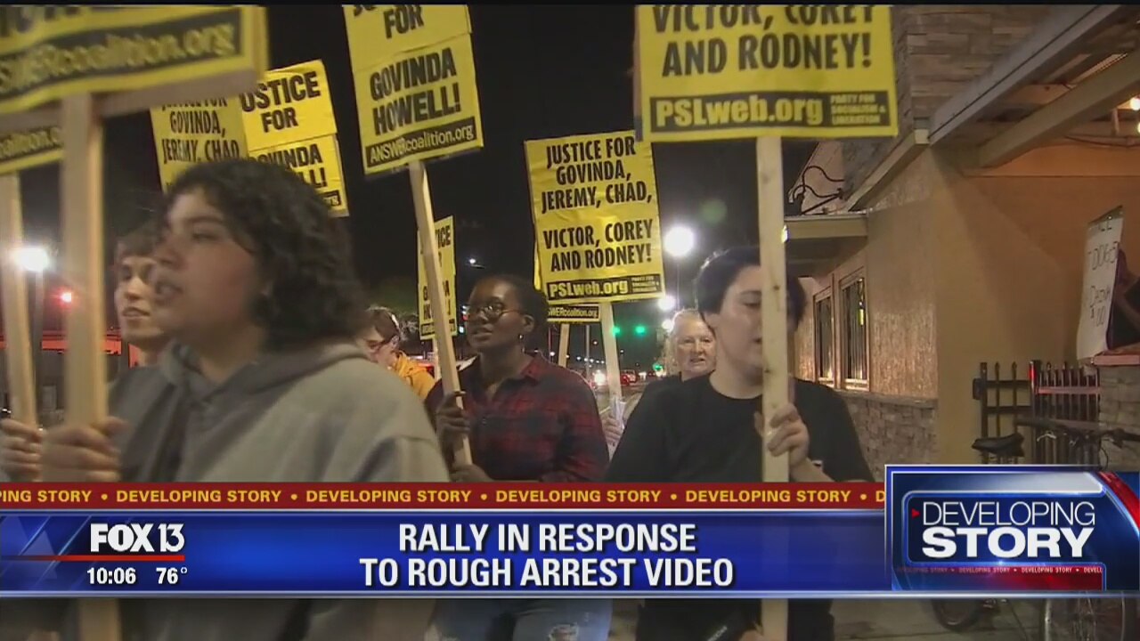 A RALLY WAS HELD TONIGHT IN SUPPORT OF THE MAN ON THE GOURND IN THIS VIDEO. GOVINDA HOWELL'S FAMILY SAYS SARASOTA POLICE WERE UNNECESSARILY ROUGH WITH A MAN WHO SUFFERS FROM MENTAL ILLNESS.