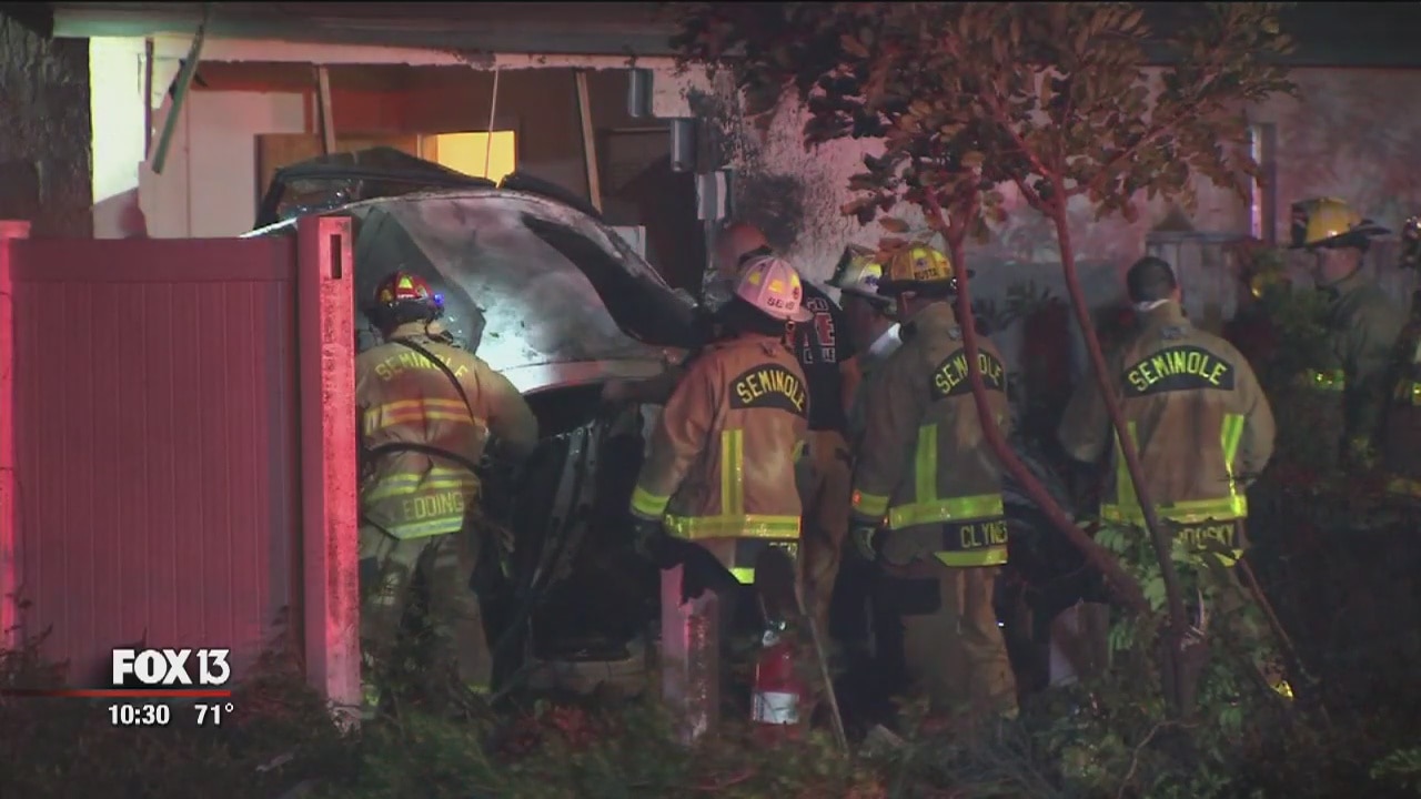 Car blows through intersection, crashes into Largo home