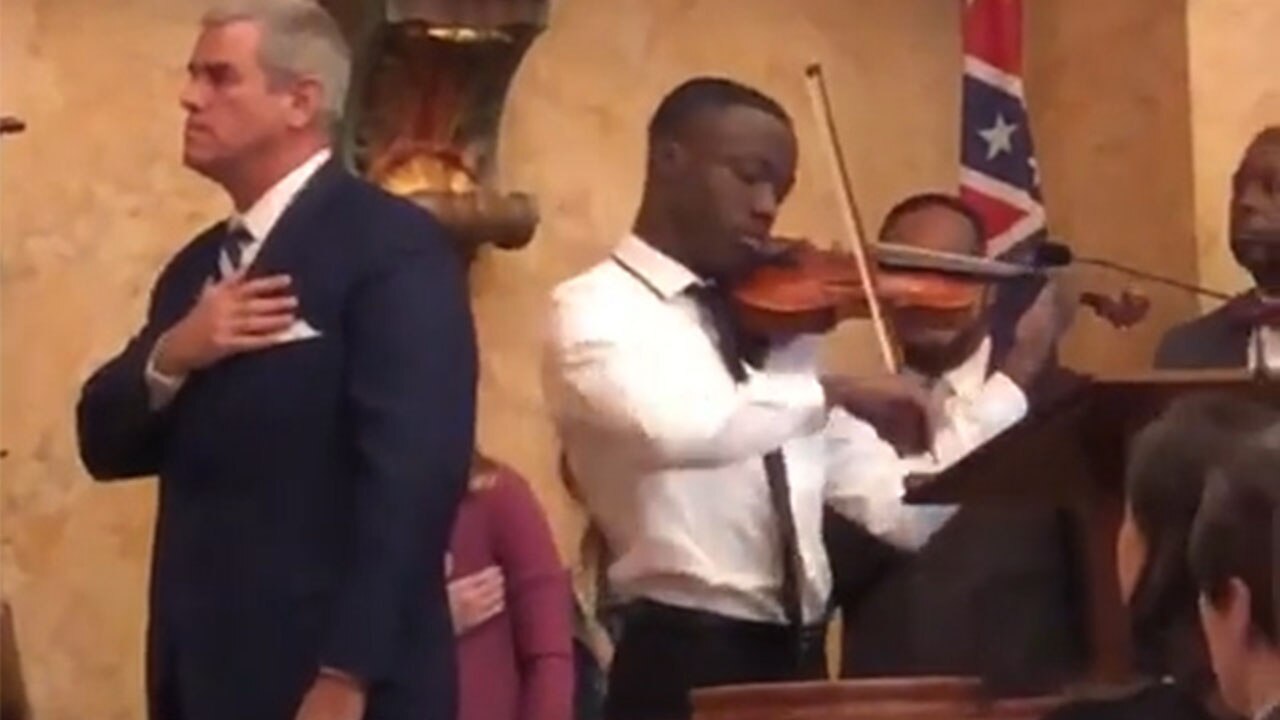 A student received a standing ovation at the Mississippi State Capitol on March 19 after he performed the US national anthem on a violin.