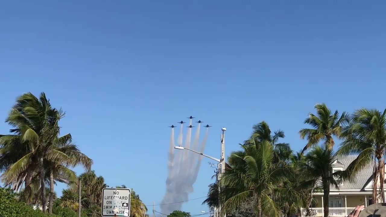 The U.S. Navy Blue Angels flew the length of Duval Street in Key West ahead of an air show this weekend.