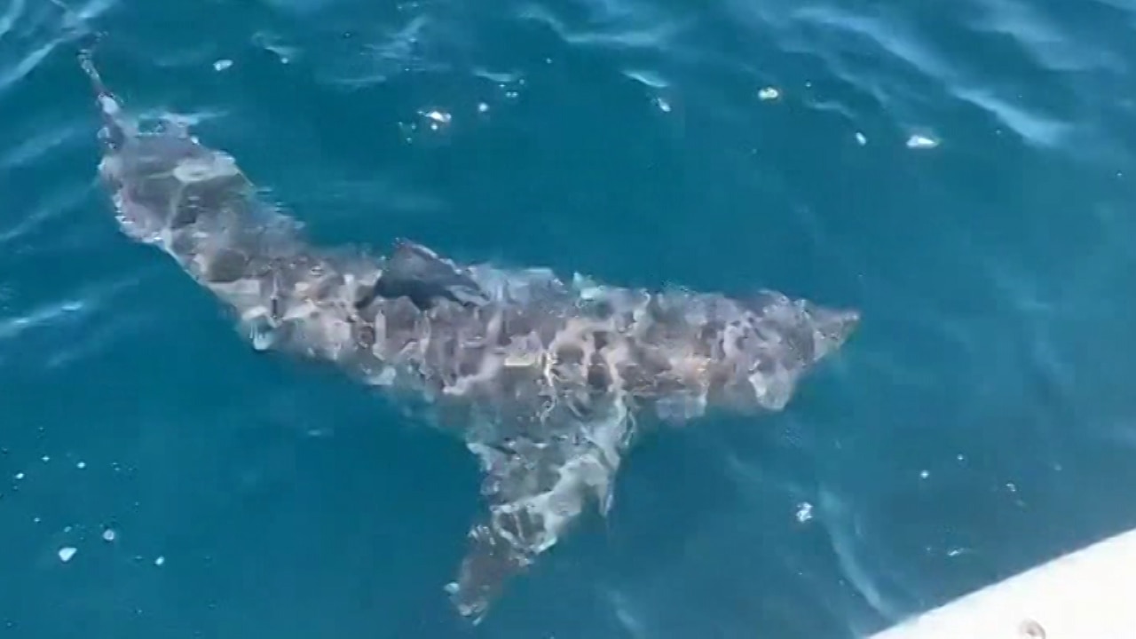 A group on a private fishing trip were out to sea near Pensacola when a great white shark swam up beside their boat. The captain of Hot Spots Charter recorded about 40 seconds of the shark, which was about nine to ten feet long.