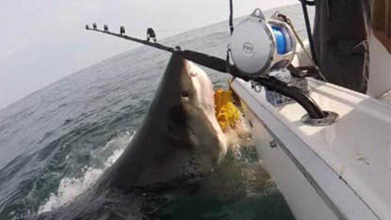 Fishermen off the New Jersey coast were stunned when a massive great white shark stole their bait.