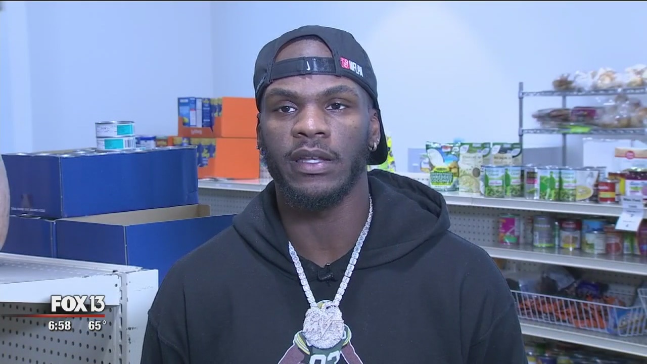 Duffel bags filled with life's necessities is a gift Green Bay Packers wide receiver Marquez Valdes-Scantling helps deliver to homeless citizens in Tampa.