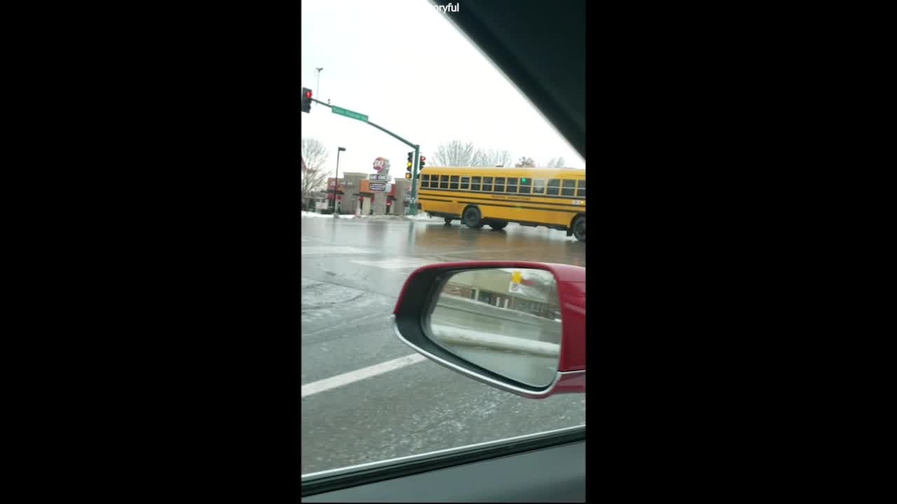 A driver in Minnesota captured the moment a yellow bus slid sideways down an icy road.