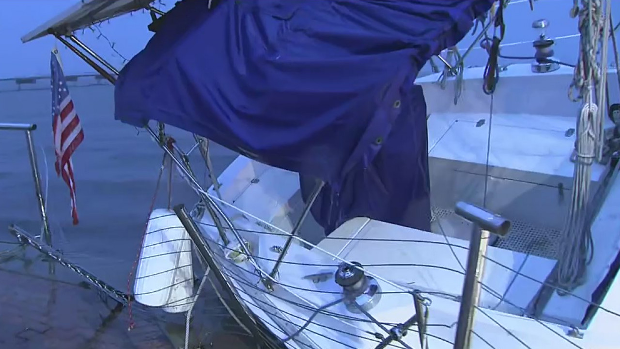 A handful of sailboats were either grounded on sand or slammed in a seawall when Eta rolled into Gulfport.