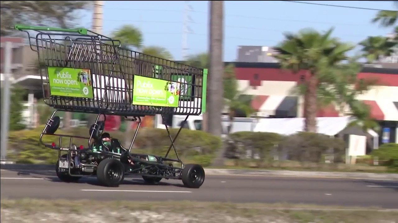 Giant motorized shopping cart cruises through Clearwater