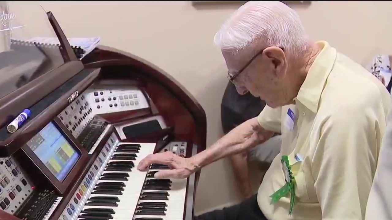 Today is Bud Kassel's birthday. He's celebrating 99 years with a special piano concert, showing off his his musical talent.