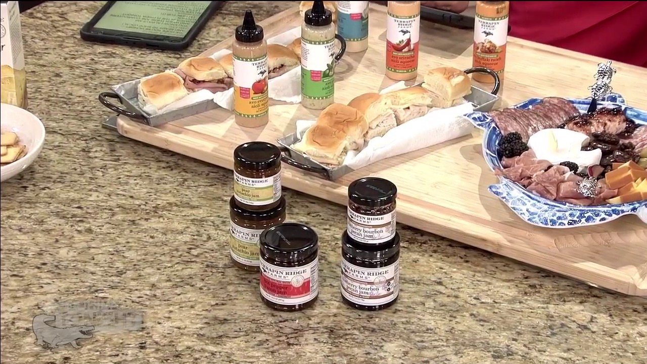 Special guests from locally owned Terrapin Ridge Farms share some savory flavors they sell that go great with charcuterie boards.