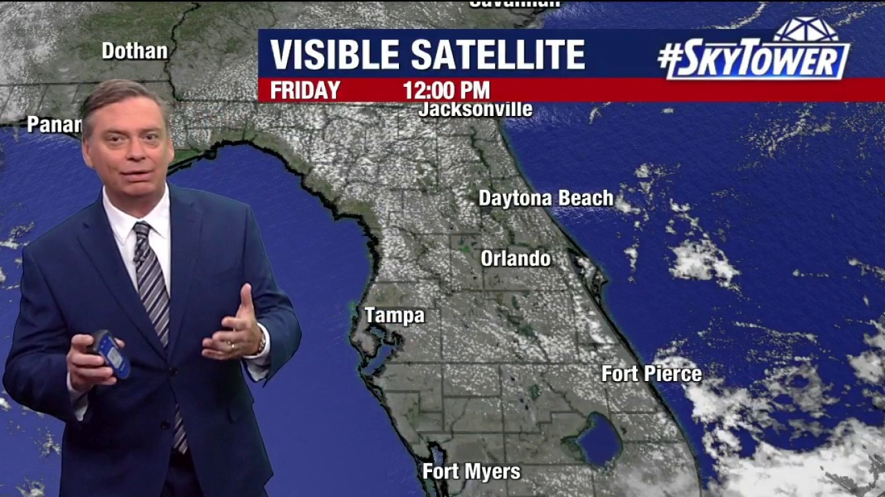 FOX 13 Meteorologist Jim Weber says Friday will be partly cloudy with a late day inland shower. The high temperature will be 84 degrees.