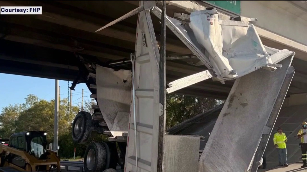 A dump truck driver is facing pending charges after slamming into an I-75 overpass in Sarasota on Monday morning, according to the Florida Highway Patrol. FOX 13's Kimberly Kuizon reports.