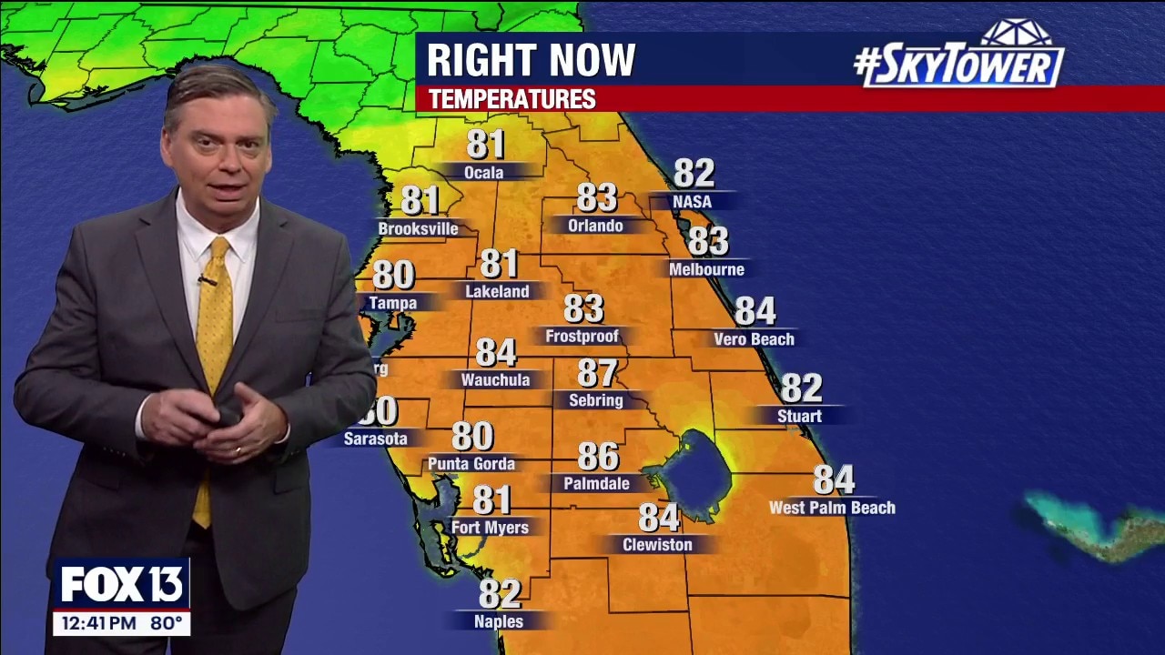 FOX 13 Meteorologist Jim Weber says Thursday will have increasing clouds with afternoon and evening showers. The high temperature will be 81 degrees.
