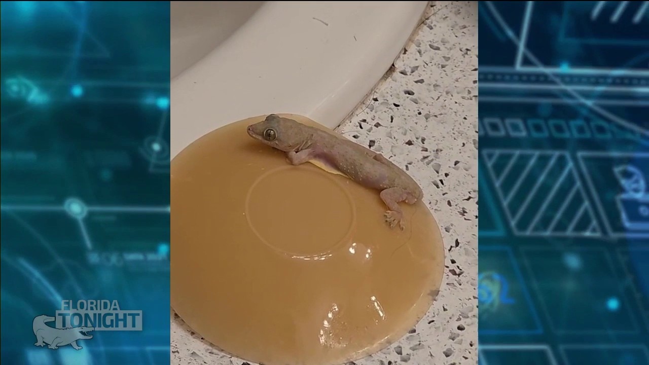 Watch as one tiny lizard in Groveland found itself in a very sticky situation.