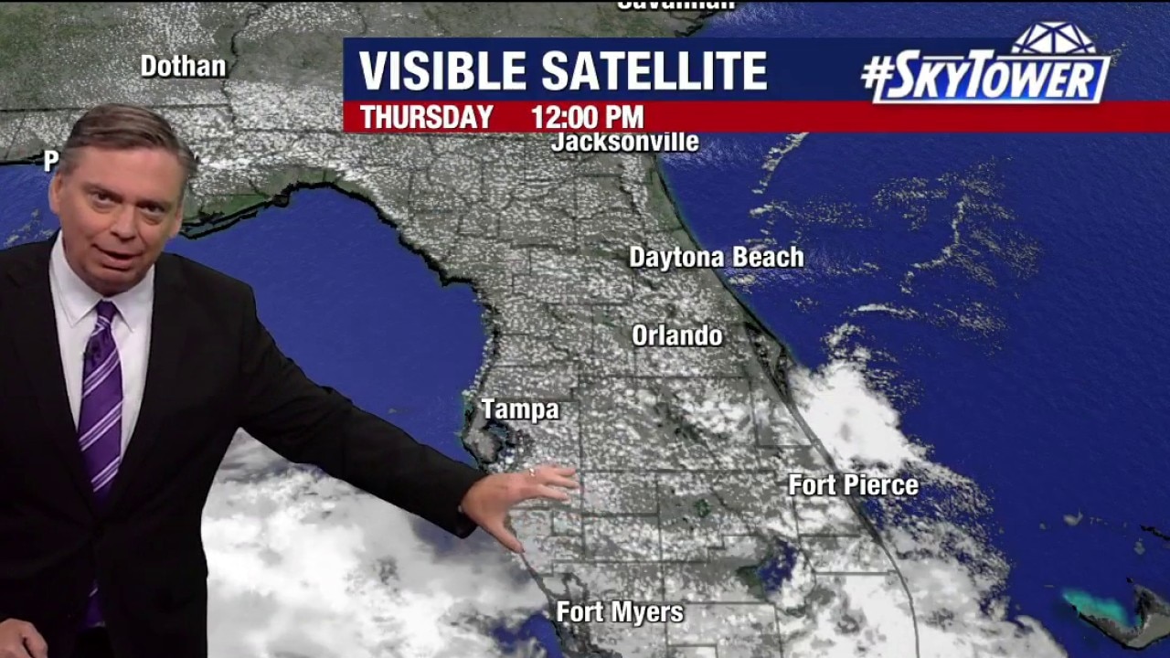 FOX 13 Meteorologist Jim Weber says Thursday will be partly cloudy with the possibility of a random shower. The high temperature will be 84 degrees.