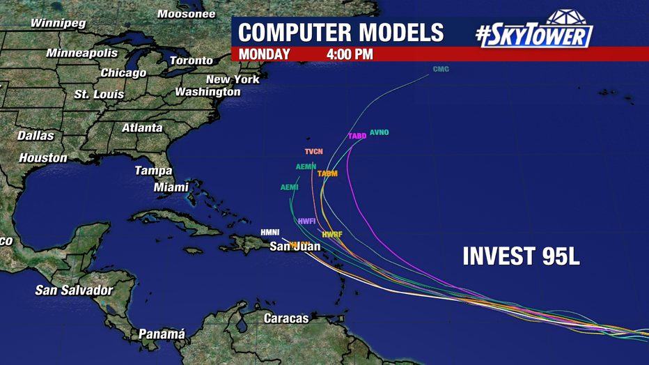 FOX 13 meteorologist Valerie Mills has the latest on the developments in the tropics as Invest 95L moves across the Atlantic.