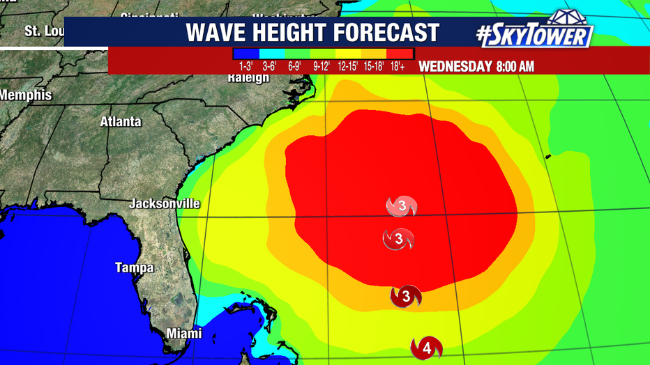 Wave heights between 5-10′ are likely along Florida’s east coast early to mid-week.
