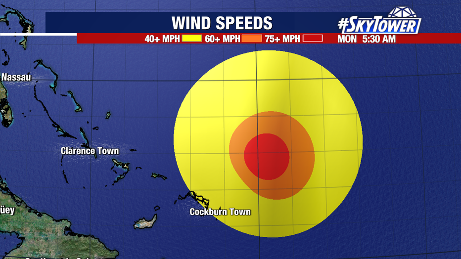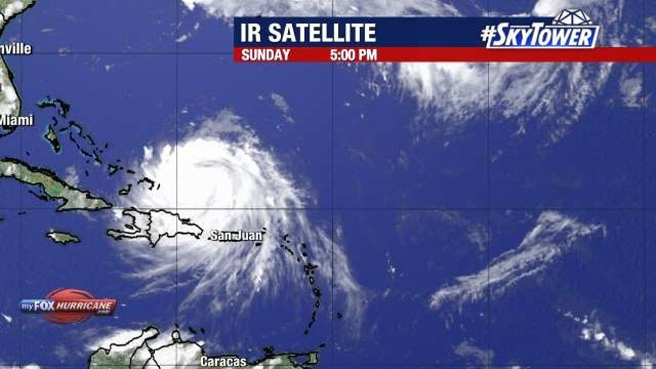 Sustained winds are 125 mph as the storm moves west-northwest at 14 mph. A Tropical Storm Warning is in effect for the Turks and Caicos with a Tropical Storm Watch covering the SE Bahamas.