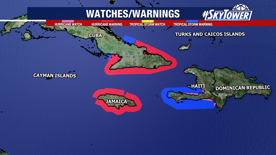Tropical Storm Warnings are also in effect for Cuba and southwest Haiti.